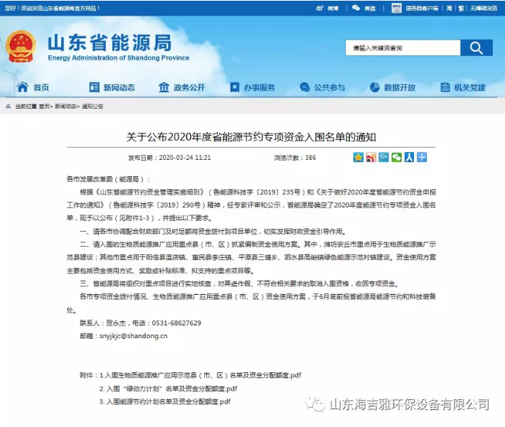 热烈祝贺海吉雅环保设备有限公司入围2020年度山东省能源节约项目