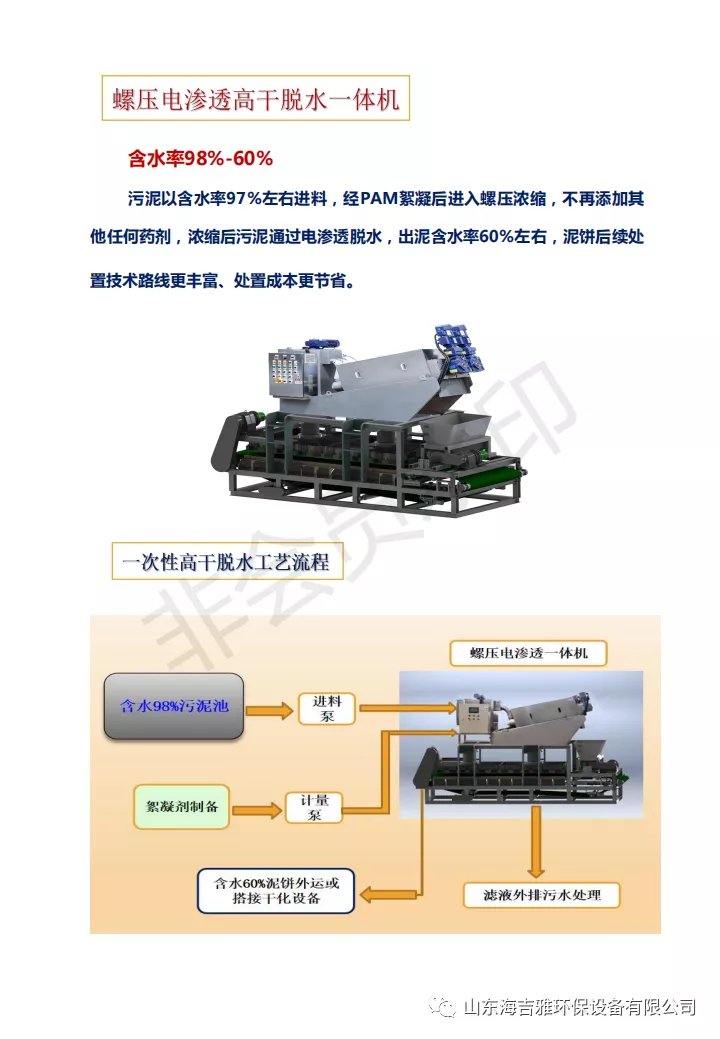 电渗透脱水技术是目前国际上前沿固废减量技术,减量过程只消耗电能,我司研发的双面序压电渗透脱水机,能耗低,处理量大,清洁无污染,符合国家固废处理的减量化、无害化,节能减碳的资源化标准,产品属国际领先水平;面对当前世界工业4.0的大趋势,将高效、智能、创新,减碳作为设计核心,开展推动整体产品的研发工作。卧螺离心机作为特种固液分离设备,其中油、泥、水分离环保处理工艺装备荣获2020年度山东省科技进步奖。