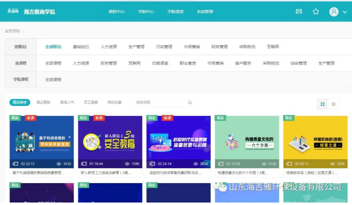 为了更好的提高企业整体管理水平,满足企业战略需要,提升员工能力,营造全员学习的氛围。日前,公司与国内知名培训公司--深圳中旭企业管理有限公司青岛分公司达成战略合作,开通了海吉雅商学院,为全体员工搭建了一个良好的学习平台。课程涉及到国内外知名企业的一些经典案例和具体岗位上的知识讲解。